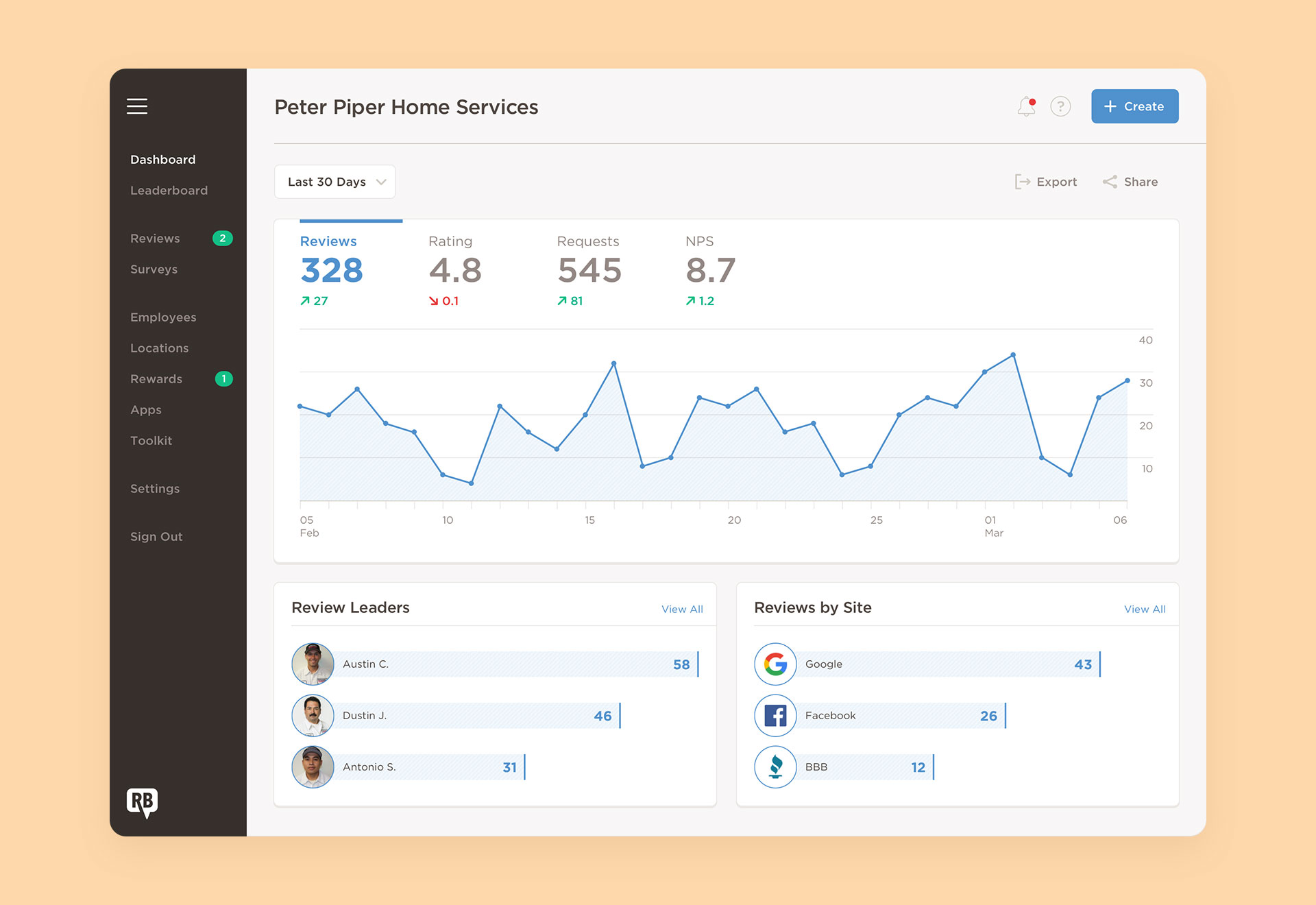 ReviewBuzz was an early leader in the online reputation space amongst home service companies. But over the years, their platform had become obsolete and the company had been surpassed by many competitors in the space. By 2017, a complete redesign was long overdue.
